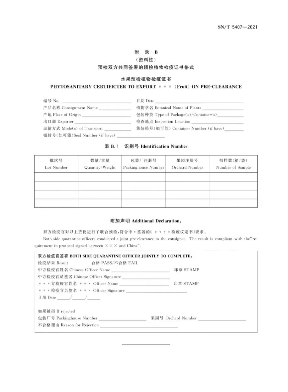 適用于向中國出口水果的產(chǎn)地和產(chǎn)品預檢。