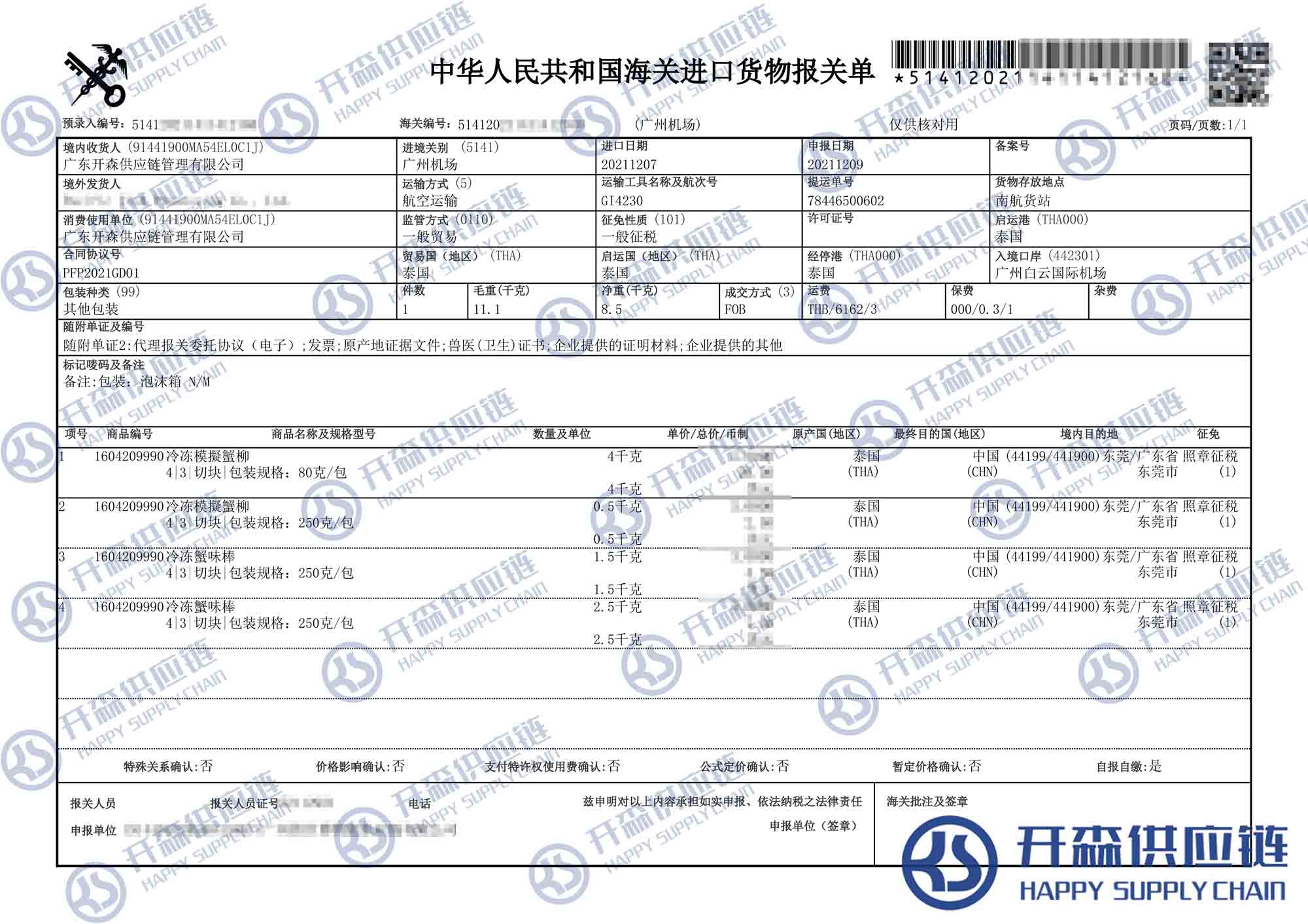 一、泰國蟹柳進口報關(guān)代理案例詳情