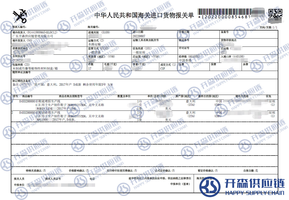 一、二手制鞋生產(chǎn)線設備進口報關(guān)代理案例詳情
