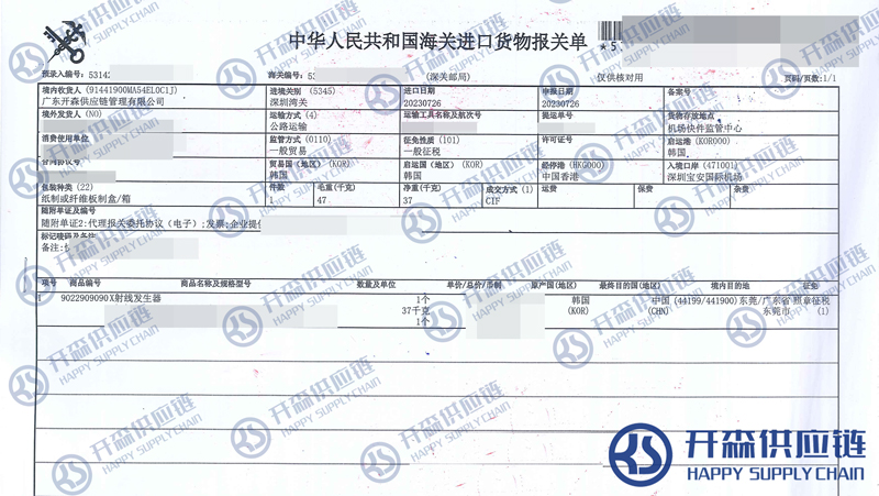 一、深圳機(jī)場韓國X射線設(shè)備進(jìn)口報(bào)關(guān)代理案例詳情