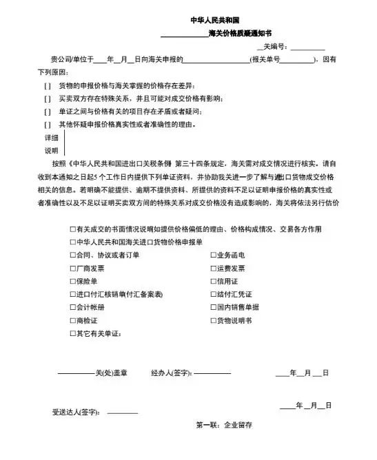 自收到《海關(guān)價格質(zhì)疑通知書》之日起5個工作日內(nèi),以書面形式提供相關(guān)資料(如提供價格偏低的理由、價格構(gòu)成情況、交易各方作用的情況說明,《中華人民共和國海關(guān)進(jìn)出口貨物價格補充申報單》,合同、協(xié)議或者訂單,業(yè)務(wù)函電,廠商發(fā)票,運費發(fā)票,保險單,結(jié)付匯憑證,貨物說明書等),以證明其申報價格真實、準(zhǔn)確或買賣雙方之間的特殊關(guān)系未影響成交價格。